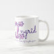 Decorated hand drawn letter with your own name beginning with I and name meaning mug. Pretty heart and flower capital I doodled typographic design featuring hearts and flowers and the words Ingrid A meadow. The beautiful daughter of a hero in pink and purple. © Unique art and design by Sarah Trett. www.sarahtrett.com for www.mylittleeden.com on zazzle