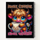 A funny and sarcastic design showcases a cute highland cow with big blue eyes, sitting contentedly in front of a vibrant daisy while holding a steaming cup of black coffee. The cow's soft brown fur adds to its charm. Bright, colorful text reads, "Inhale caffeine, exhale negativity." This delightful design is available on a variety of products, making perfect gifts for coffee enthusiasts.