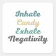 Looking for a way to brighten up your day and spread positivity? Look no further than our "Inhale Candy Exhale Negativity" stickers! These fun and playful stickers feature the inspiring message "Inhale Candy Exhale Negativity". Stick them on your laptop, water bottle, or anywhere else you want to add a little bit of joy and positivity. Made from high-quality vinyl, these stickers are waterproof, weather-resistant, and long-lasting, so you can enjoy them for years to come. Order yours today and start spreading the love!