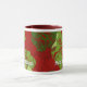 The greeting is "Mele Kalikimaka” which mean Merry Christmas in Hawaiian. This original textile print is wrapped around this two-tone coffee mug.