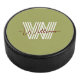 Initial and script monogrammed birthday olive hockey puck