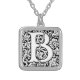 Initial B Monogram. Customized Name Floral Pattern Silver Plated Necklace