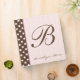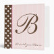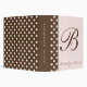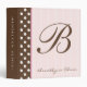 Pink, brown and white polkadot and striped binder with a large brown initial on the front