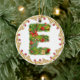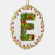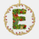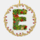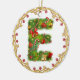 initial E monogrammed christmas ornament - circle/ This exquisite letter E christmas tree decoration will give your xmas a traditional touch with a modern personalized feel. Designed to look like a fir tree covered with presents and gifts this letter a on a circular ornament is surounded by a gold frame with red berries. Upmarket and on trend this is an affordable luxury for you holiday decor needs. Double sided for extra impact this green and red image on a snowy white background is a favorite with businesses also. Full alphabet available.
