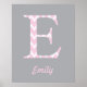 This Pink and Gray Personalized Chevron Monogramed Name Poster can be Personalized with the first "E" Initial of your name or your child's name.