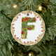 initial F monogrammed christmas ornament - circle/ This exquisite letter F christmas tree decoration will give your xmas a traditional touch with a modern personalized feel. Designed to look like a fir tree covered with presents and gifts this letter a on a circular ornament is surounded by a gold frame with red berries. Upmarket and on trend this is an affordable luxury for you holiday decor needs. Double sided for extra impact this green and red image on a snowy white background is a favorite with businesses also. Full alphabet available.