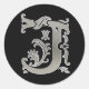 Initial J Round Sticker in silver