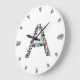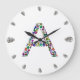 Initial Letter A with Gemstone Floral Monogram Large Clock