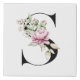 Initial Letter | Black Serif Floral Monogram | S | Faux Canvas Print