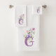 Initial Letter G Plus Floral Design Bath Towel Set