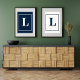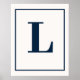 Stylish initial letter monogram poster for print. Modern minimalistic in Navy blue on gray typography. The perfect individual gift or accessory with an individual approach!