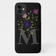Design features Monogram plus Flowers in a Floral Design. Initial is the letter M. Black Phone case.