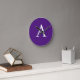 Initial Letter Monogram Modern Style Purple Round Clock