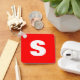 Initial Letter Monogram Modern Style Red White Keychain