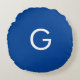 Initial Letter Monogram Modern Stylish Blue Round Pillow