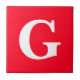 Initial Letter Monogram Red White Plain Simple Ceramic Tile