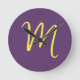 Initial Letter Monogram Stylish Indigo Yellow Round Clock