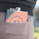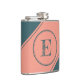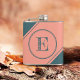 This humorous flask features a centered geometric double circle in teal over a pale salmon background. Personalize the text field with an initial letter or click customize to select a typeface color, size, and style your prefer.