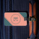 This chic luggage tag features a centered geometric double circle in teal over a pale salmon background. Personalize the text field with an initial letter or click customize to select a typeface color, size, and style your prefer.