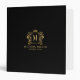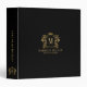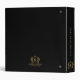 Initial monogram gold crest scrolls crown on black 3 ring binder