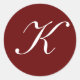 Classic White Letter Monogram on Dark Red Background Sticker Template, "K"