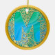 Initial Monogram M Christmas - Gold, Teal & Blue Ceramic Ornament