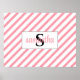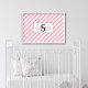 This adorable monogram featuring a script initial and first name makes a wonderful addition to a baby girl's nursery. With pink and white diagonal stripes, she is sure to love it! Add a frame and it will be ready to hang. Order yours today.
