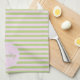 Initial Monogram & Name Pastel Pink Green Striped Kitchen Towel