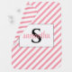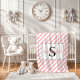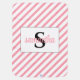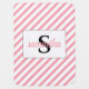 This charming monogram baby blanket features a serif initial alongside a script first name, making it a delightful addition to the nursery. With pink and white diagonal stripes, it's the perfect gift for new baby. Order yours today!