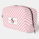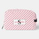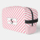 This charming monogram makeup bag features a serif initial alongside a script first name, making it a delightful accessory for her. With pink and white diagonal stripes, it will be the perfect addition to any little girl's room. Order yours today!