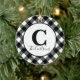 Initial Monogram Photo Black White Buffalo Plaid Ceramic Ornament