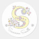 Pretty girls monogram name sticker ideal for embellishing books and to personalized girls items. Stickers reads S Susanna Smith or you can personalize with your own name or surname starting in S. Decorative capital letter S with hearts and flowers art © Designed by Sarah Trett www.sarahtrett.com for www.mylittleeden.com
