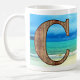 Initial Monogram C on Beach, a great mug for him or her for Birthday Christmas Father's Day or any time!