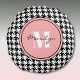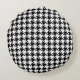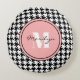 Initial Name Houndstooth Pattern Pink Accent Frame Round Pillow