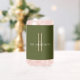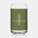 Popular can glass is an ideal gift for any occasion or treat yourself. This 16oz drinking glass resembles a classic beverage can design. Full army green wrap around the glass with khaki color initial and antique white for the decorative font family name, on both sides. Easily change text once to make it yours using the Template provided. Made in the USA. See "About This Product" at side for more information. ===>Hand wash only.<===