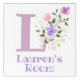 Initial & Name with Floral Design. Design features the recipient's Monogram & Name with Flowers either side in a water color pastel style. Initial is the letter L. Example shows Lauren.
