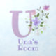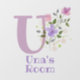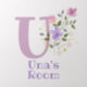 Initial & Name with Floral Design. Design features the recipient's Monogram & Name with Flowers either side in a water color pastel style. Initial is the letter U. Example shows Una.