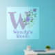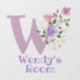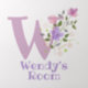 Initial & Name with Floral Design. Design features the recipient's Monogram & Name with Flowers either side in a water color pastel style. Initial is the letter W. Example shows Wendy.