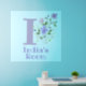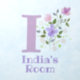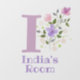 Initial & Name with Floral Design. Design features the recipient's Monogram & Name with Flowers either side in a water color pastel style. Initial is the letter I. Example shows India.