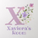 Initial & Name with Floral Design. Design features the recipient's Monogram & Name with Flowers either side in a water color pastel style. Initial is the letter X. Example shows Xaviera.
