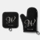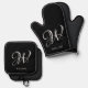 Initial Personalized Elegant Black Monogram Oven Mitt & Pot Holder Set