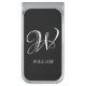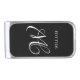 Initial Personalized Elegant Black Monogram Silver Finish Money Clip
