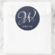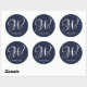 Initial Personalized Elegant Navy Blue Monogram Classic Round Sticker