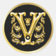 Initial V Round Sticker in Gold