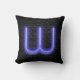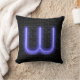 Initial W in glowing marquee purple neon lighting on urban city brick wall.