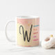 This mug will be a favorite for everyone from your sweet grandma to your teenage sister. With the right message, a mug can become anyone’s treasured companion for years to come. This design features a beautiful, hand-drawn letter "W" in black cursive on a stunning watercolor background. The left side showcases a warm yellow-to-pink gradient, while the right side displays a soft pink-to-yellow gradient. Surrounding the letter are vibrant words in various colors, including blue, orange, red, purple, and pink, highlighting positive traits starting with the letter "W". The overall effect is a visually appealing and uplifting design that celebrates the beauty of the letter "W" and its associated qualities. The watercolor background adds a touch of elegance and sophistication, making this design perfect for inspirational or motivational purposes.