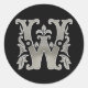 Initial W Round Sticker in silver