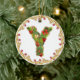 initial Y monogrammed christmas ornament - circle. This exquisite letter Y christmas tree decoration will give your xmas a traditional touch with a modern personalized feel. Designed to look like a fir tree covered with presents and gifts this letter a on a circular ornament is surounded by a gold frame with red berries. Upmarket and on trend this is an affordable luxury for you holiday decor needs. Double sided for extra impact this green and red image on a snowy white background is a favorite with businesses also. Full alphabet available.