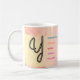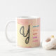 This mug will be a favorite for everyone from your sweet grandma to your teenage sister. With the right message, a mug can become anyone’s treasured companion for years to come. This design features a beautiful, hand-drawn letter "Y" in black cursive on a stunning watercolor background. The left side showcases a warm yellow-to-pink gradient, while the right side displays a soft pink-to-yellow gradient. Surrounding the letter are vibrant words in various colors, including blue, orange, red, purple, and pink, highlighting positive traits starting with the letter "Y". The overall effect is a visually appealing and uplifting design that celebrates the beauty of the letter "Y" and its associated qualities. The watercolor background adds a touch of elegance and sophistication, making this design perfect for inspirational or motivational purposes.