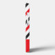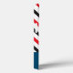 Cool graphic artwork in striped pattern, navy, red and black with big initials.